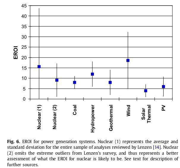 vedete che l’analisi dell’EROEI ci riserva notevoli sorprese, in particolare mette le rinnovabili alla pari con tecnologie molto più blasonate. Certo, non dobbiamo prendere l’EROEI come l’unico criterio per guidare le nostre scelte, ma se consideriamo i danni che ci stanno facendo i combustibili fossili (petrolio, gas e carbone) in termini di inquinamento e di cambiamento climatico, allora i dati sull’EROEI ci dicono che c’è una strada possibile per produrre energia pulita in modo efficiente e che possiamo percorrerla se ne abbiamo voglia.